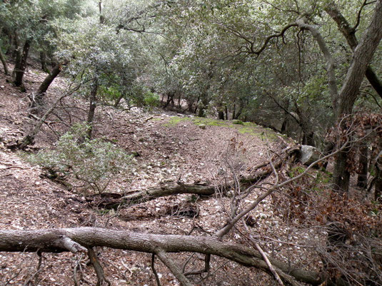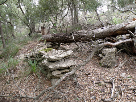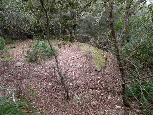 Rotlle de sitja ben gran, que presenta encara la barraca de carboner, segurament restaurada pels caçadors. Just a la capçalera
